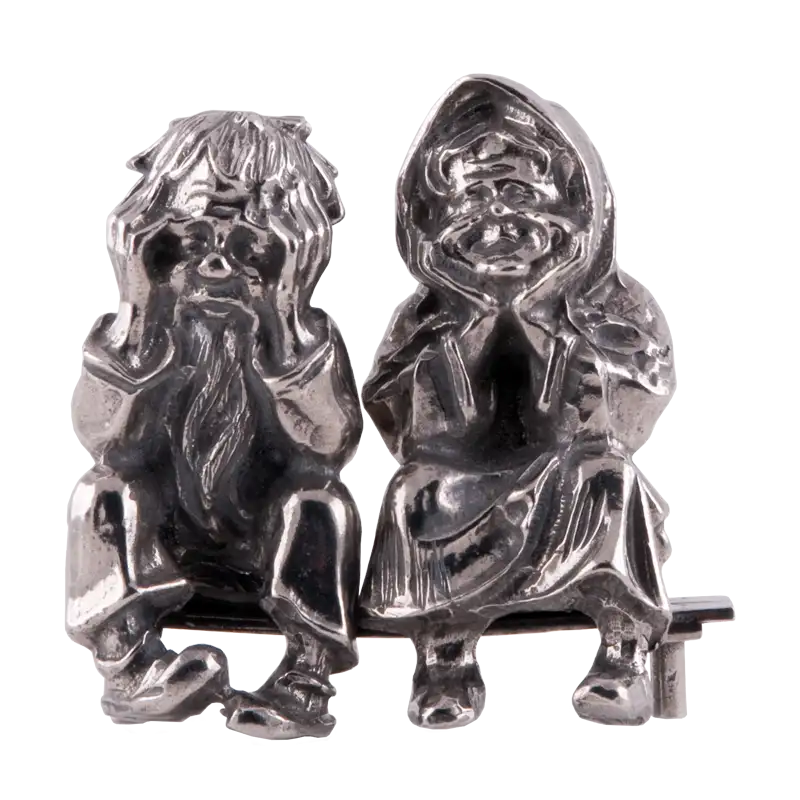 Tinnen sculptuur van het ambacht “Abraham en sara”, in prachtige opstelling inclusief buigtang en materiaal.