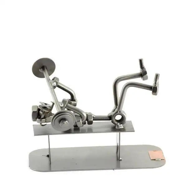 Het beeldje bankdrukken vrije tijd sport is gemaakt van moeren en staal