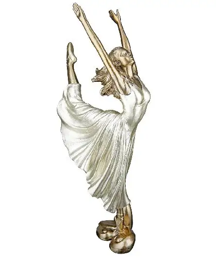 Breng de kracht en elegantie van dans tot leven met dit indrukwekkende beeld van een dansende ballerina. In een dynamische pose met been en armen sierlijk in de lucht, straalt dit beeldje energie, balans en schoonheid uit. De luxe gouden afwerking en de hoogte van 31 cm maken het tot een echte blikvanger in elk interieur.