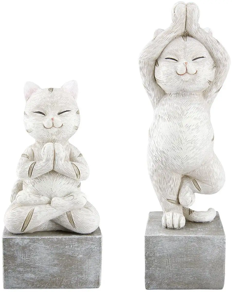 Breng een glimlach in huis met deze schattige yoga kittens beelden. Deze set van twee kattenbeeldjes toont sierlijke poezen in yogahoudingen, uitgevoerd in een zachte crème/witte kleur. Gemaakt van duurzaam polyresin en met een hoogte van 17 cm, zijn deze beeldjes perfect voor op een plank, vensterbank of als speelse toevoeging aan je interieur.