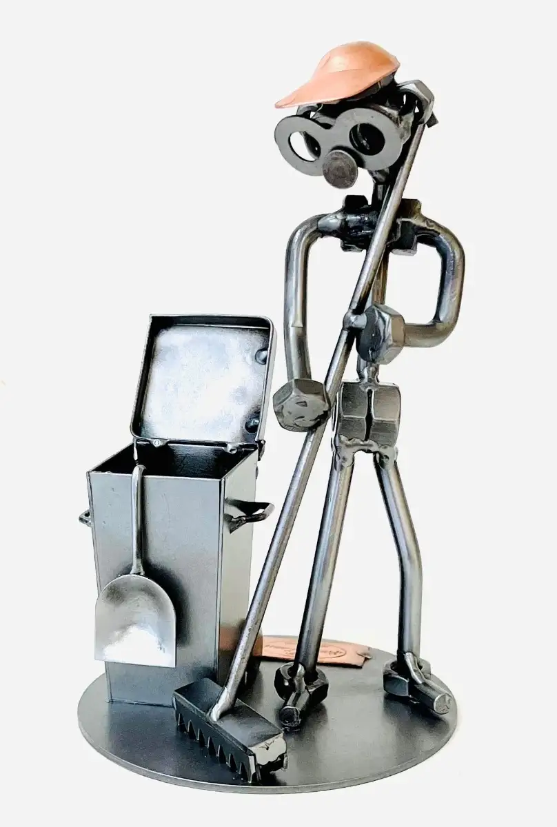 Het Beeldje congiërge / huismeester is gemaakt van moeren en staal