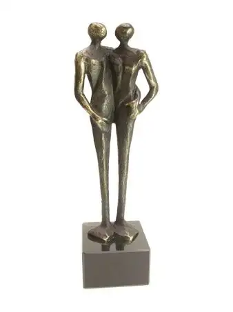 De gebronsde beeldjes zijn een ideaal geschenk voor samenwonen, verloving, huwelijk en gewoon voor jouw partner, 35 jarig huwelijk, geschenken algemeen en voor bijzondere kados alles te vinden in onze kunstshop. Deze bijzondere beeldjes zijn gemonteerd op een sokkel van marmer. Deze beeldjes bieden u de mogelijkheid om ze te voorzien van een gravering of lasering van een tekst of bedrijfslogo. Het beeldje met een gelaserd bedrijfslogo is een bijzonder relatiegeschenk. De avond kunstshop voor met bijzondere beeldjes.