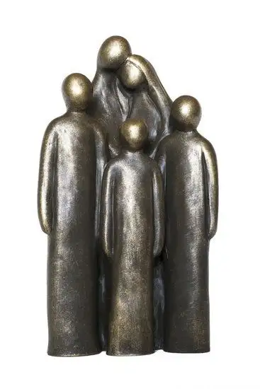 Alle familie beeldjes zijn gemaakt van steenhars, steenhars is een mengsel van steengruis met hars. Het voelt qua gewicht en uitstraling aan als steen. Na het gietproces worden de familie beelden voorzien van een kleur of verbronsd.
