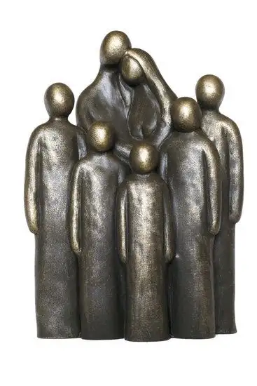 Alle familie beeldjes zijn gemaakt van steenhars, steenhars is een mengsel van steengruis met hars. Het voelt qua gewicht en uitstraling aan als steen. Na het gietproces worden de familie beelden voorzien van een kleur of verbronsd.