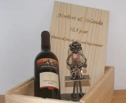Maak uw geschenk persoonlijk en uitgebreid door het beeld te geven samen met een heerlijke fles wijn in een wijnkist.