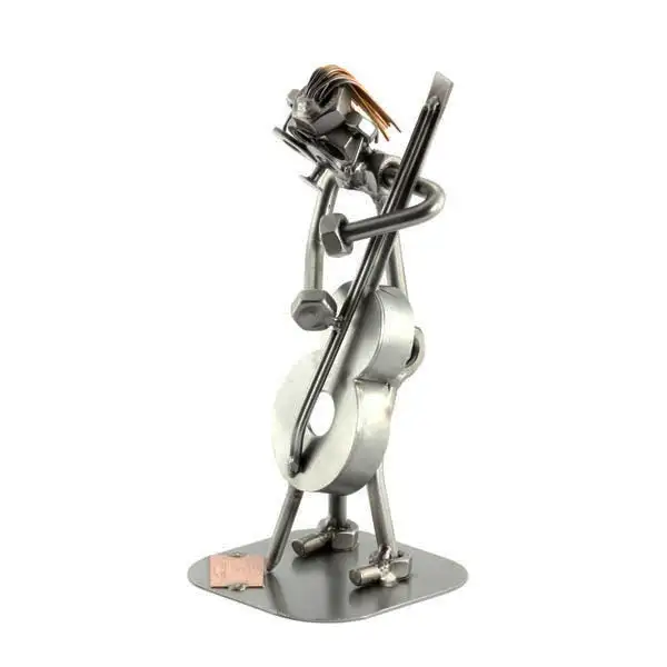 Het beeldje Contrabas is gemaakt van moeren en staal