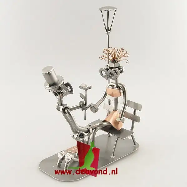 Het beeldje huwelijks aanzoek is gemaakt van moeren en staal