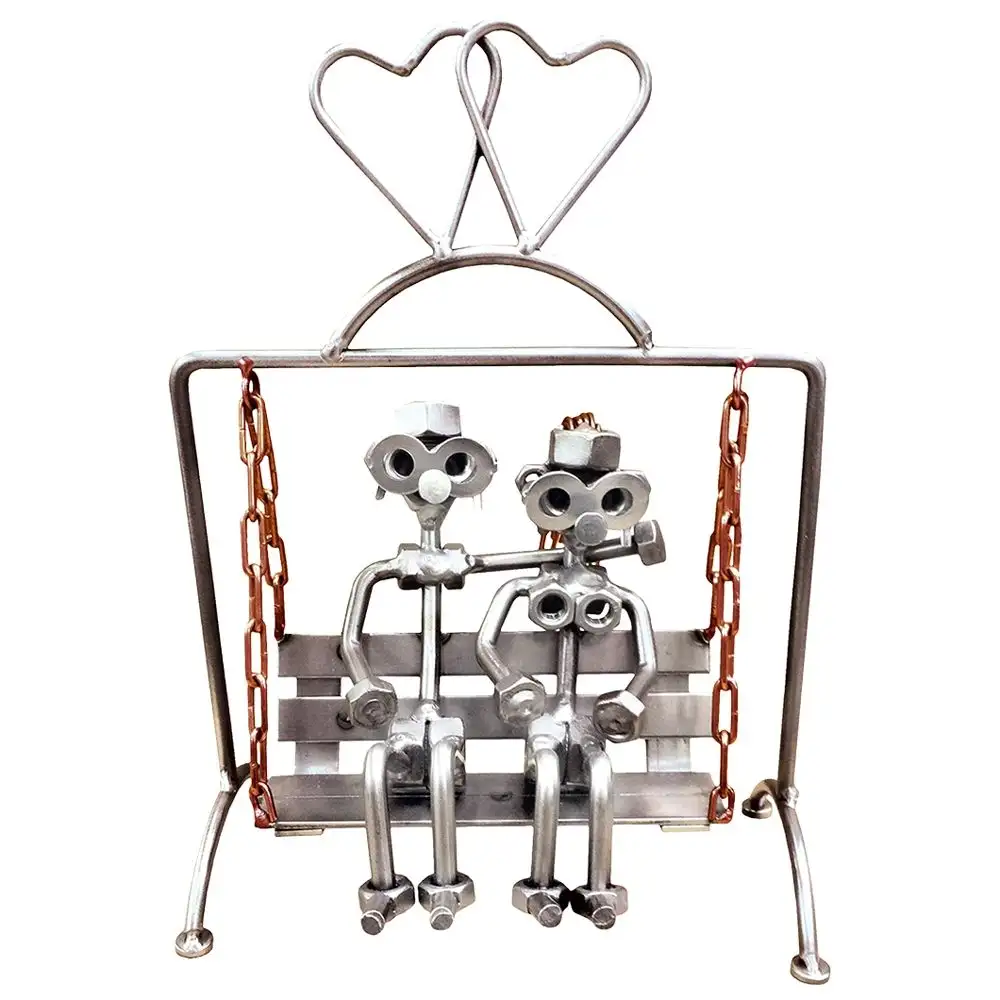 Het Metalen beeldje liefdes schommel is gemaakt van moeren en staal