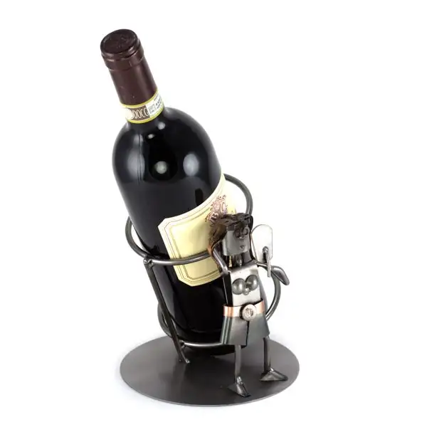 Wijnfleshouder maagd is gemaakt van moeren en staal